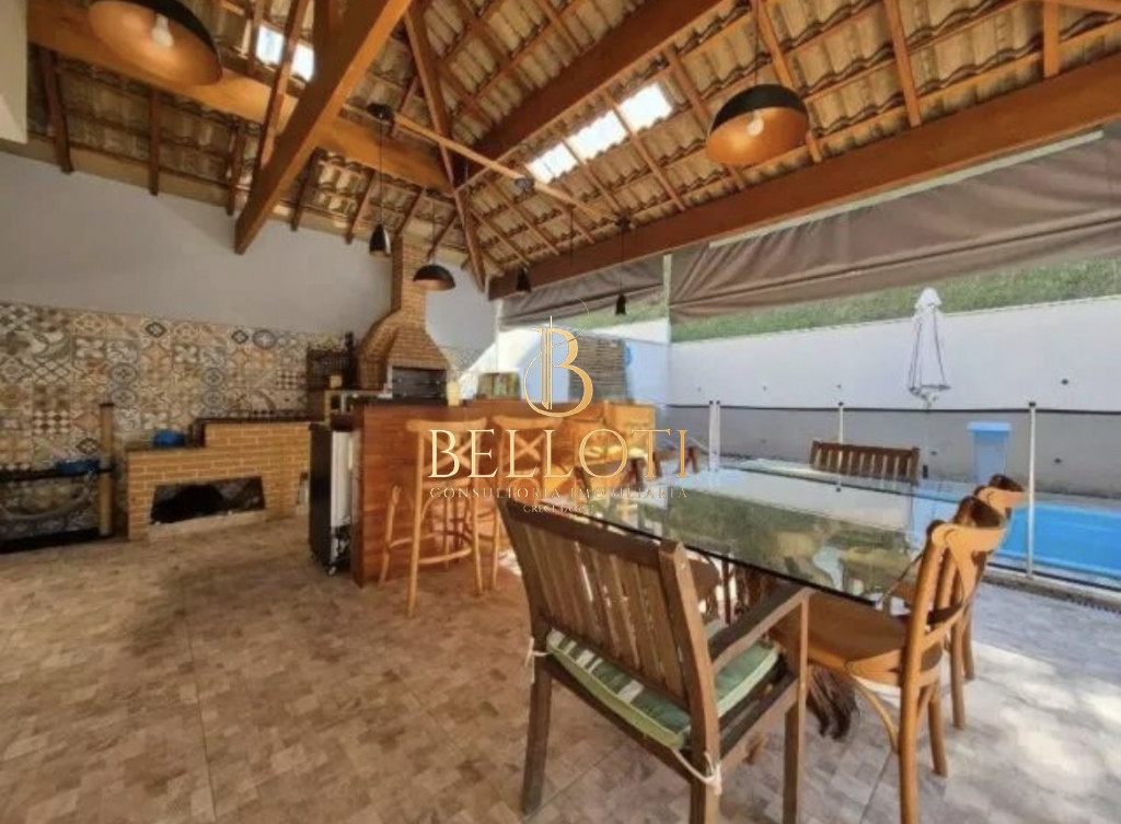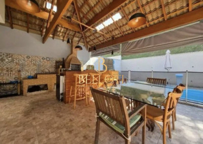 - Área gourmet completa com churrasqueira, forno a lenha, fogão, bancada generosa e piscina