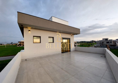 O imóvel dispõe de cozinha integrada à sala de jantar, sala de TV e espaço gourmet, lavabo, despensa e lavanderia. Conta ainda com janelas automatizadas, infraestrutura pronta para ar-condicionado e aquecimento de água, além de duas vagas de garagem.